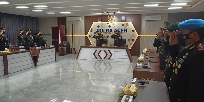Kabid Humas Polda Aceh Kombes Pol. Winardy, S. H., S. I. K., M. Si, dalam siaran persnya menyebutkan, kegiatan upacara secara virtual itu berlangsung di Aula Machdum Sakti Lantai 2 Mapolda Aceh.