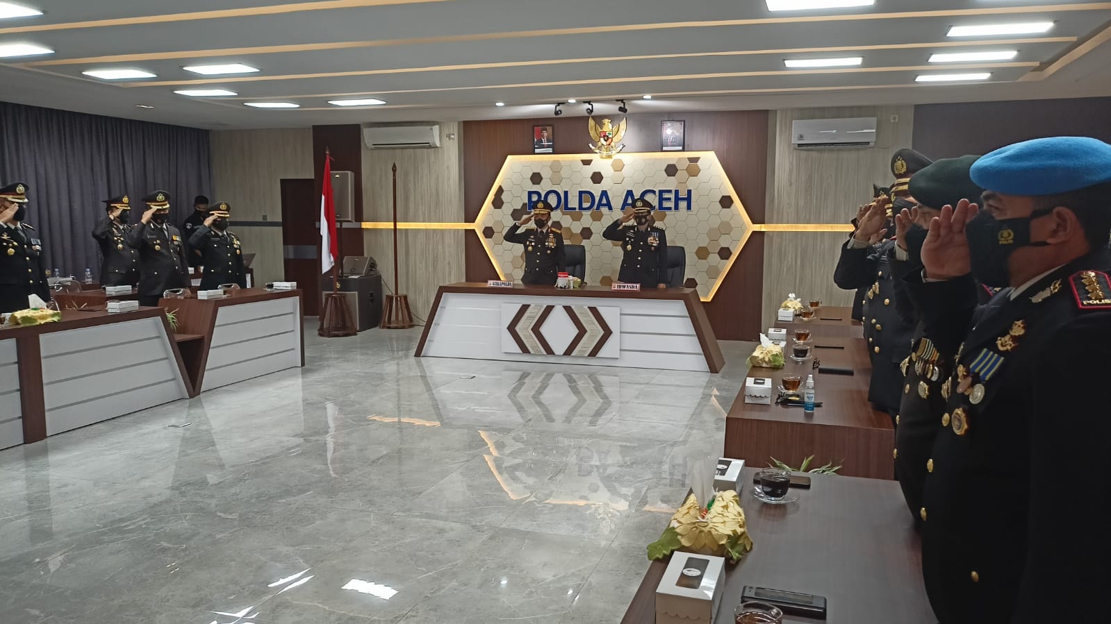 Kabid Humas Polda Aceh Kombes Pol. Winardy, S. H., S. I. K., M. Si, dalam siaran persnya menyebutkan, kegiatan upacara secara virtual itu berlangsung di Aula Machdum Sakti Lantai 2 Mapolda Aceh.