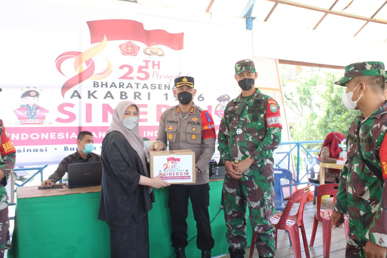 LHOKSEUMAWE – 25 tahun masa pengabdian untuk bangsa dan negara, alumni Akademi Angkatan Bersenjata Republik Indonesia (Akabri) 1996 Bharatasena melaksanakan kegiatan vaksinasi dan pembagian bantuan sosial (Bansos) kepada masyarakat, Kamis (23/9/2021) di Lapangan Hiraq Lhokseumawe.