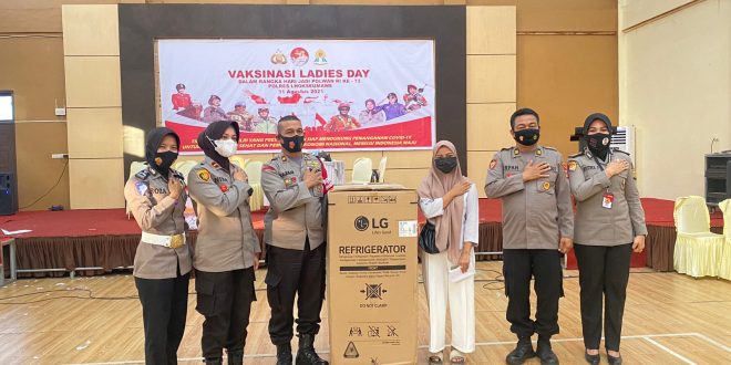 LHOKSEUMAWE – Siti Khairani Simajuntak, seorang mahasiswi Universitas Malikussaleh (Unimal) Lhokseumawe mendapatkan hadiah atau door prize berupa satu unit Lemari Es dalam program Vaksinasi Ladies Day HUT Polwan ke 73 di Polres Lhokseumawe, Minggu (5/9/2021) sore.