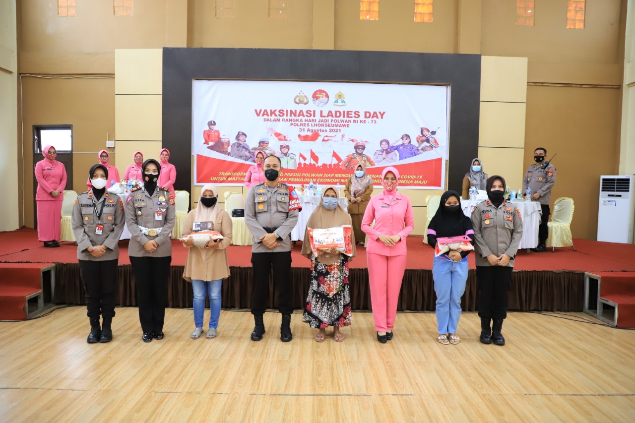 Kapolres Lhokseumawe AKBP Eko Hartanto, S.I.K, M.H dalam sambutannya menyampaikan, Vaksinasi Ladies Day ini merupakan kegiatan positif karena masa covid-19 belum berakhir sehingga dapat memberikan pencegahan, meningkatkan imunitas dan proteksi yang baik kepada masyarakat.