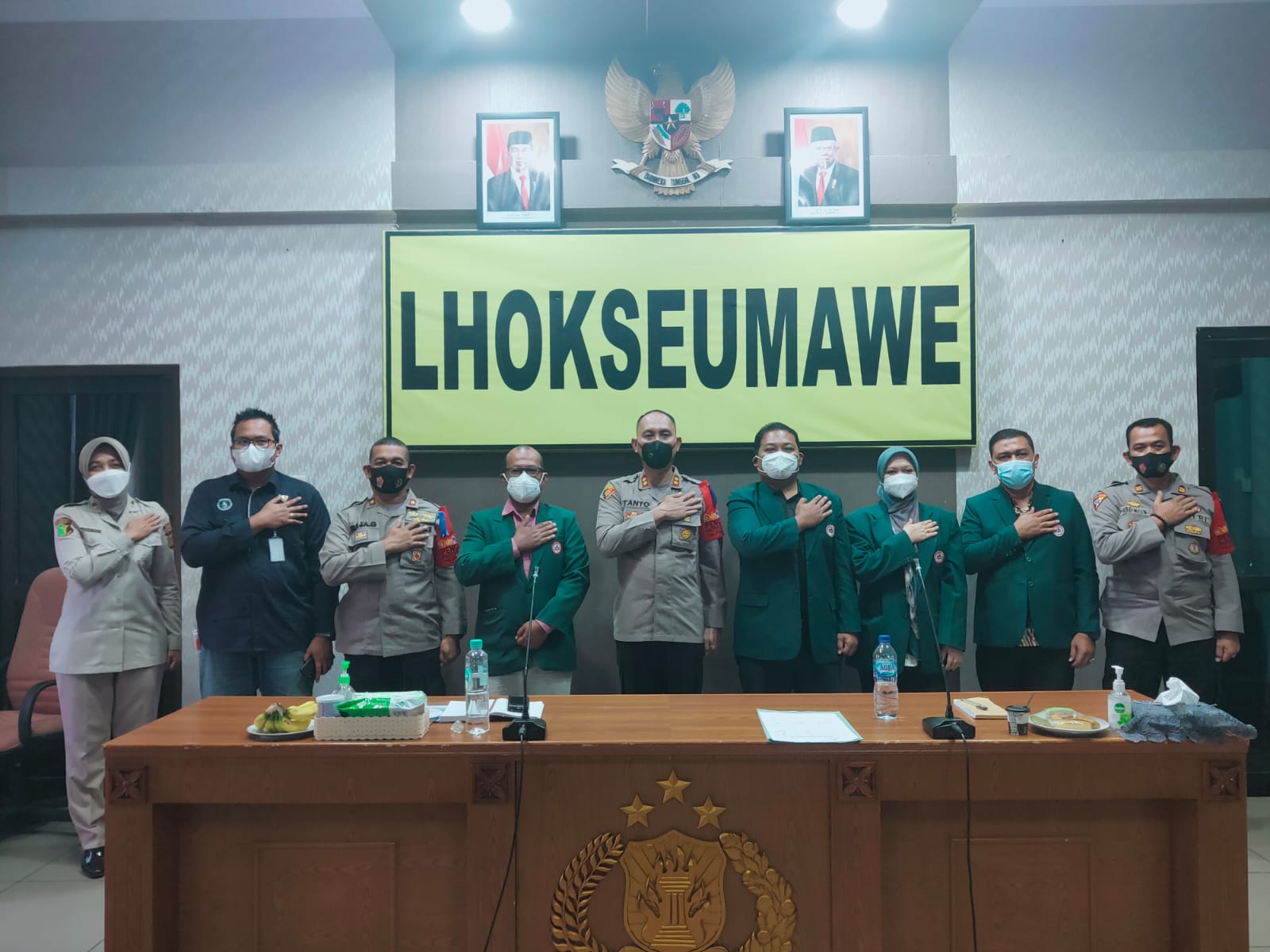 LHOKSEUMAWE – Kapolres Lhokseumawe AKBP Eko Hartanto SIK MH menggelar rapat kordinasi dengan Ikatan Dokter Indonesia (IDI) Kota Lhokseumawe dan Aceh Utara di ruang Presisi Polres Lhokseumawe, Kamis (23/9/2021) pagi.