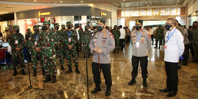 JAKARTA – Panglima TNI Marsekal Hadi Tjahjanto dan Kapolri Jenderal Listyo Sigit Prabowo meninjau langsung serbuan vaksin di wilayah Kalimantan Barat (Kalbar) yang digelar di dua tempat, yaitu di Ayani Mega Mall dan SMAN 1 Pontianak, Rabu (8/9/2021).
