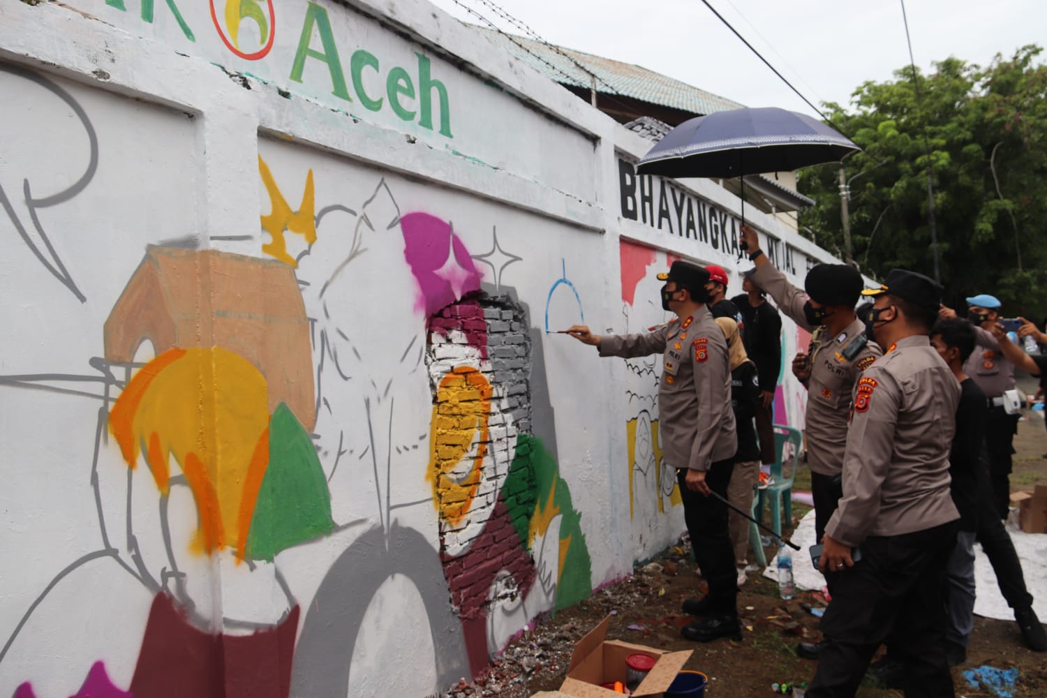 BANDA ACEH – Bhayangkara Mural Festival 2021 digelar hari ini, Sabtu (30/10/21) baik ditingkat Mabes Polri maupun jajaran Polda di Seluruh Indonesia.