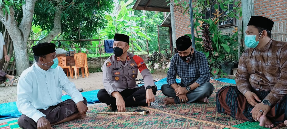 LHOKSEUMAWE – Kapolres Lhokseumawe, AKBP Eko Hartanto SIK MH menyambangi kediaman rumah duka almarhum ulama Kharismatik, Abon Armansyah di Gampong Teungoh, Kecamatan Nisam, Aceh Utara, wilayah hukum Polres Lhokseumawe, Jumat (5/11/2021).