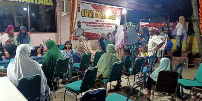 LHOKSEUMAWE – Gerai Vaksin malam hari di wilayah hukum Polres Lhokseumawe terus berlanjut melayani warga. Bahkan, warga rela mengantri untuk mendapatkan dosis vaksin Covid-19, Sabtu (22/1/2022) malam.