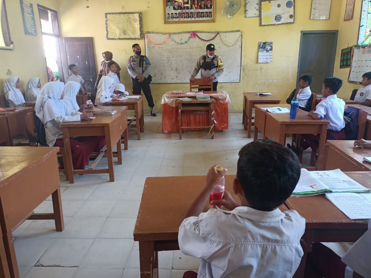 Hadir dalam kegiatan sosialisasi ini, Kanit Provost, Bripka Aidhil Eriyanto, Bhabinkamtibmas Brigadir Rijalul Aziz, para guru serta murid SDN 5 dan 13 Kuta Makmur.