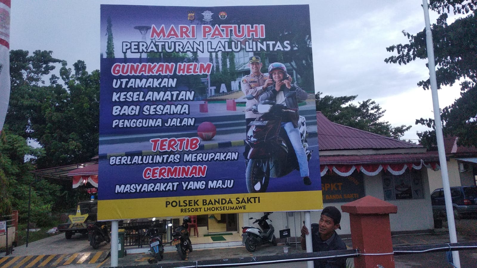 “Mari patuhi peraturan lalulintas, gunakan helm dan utamakan keselamatan bagi sesama pengguna jalan. Tertib berlalulintas merupakan cerminan masyarakat yang maju,” ujar Kasi Humas mengutip pesan pada baliho tersebut.
