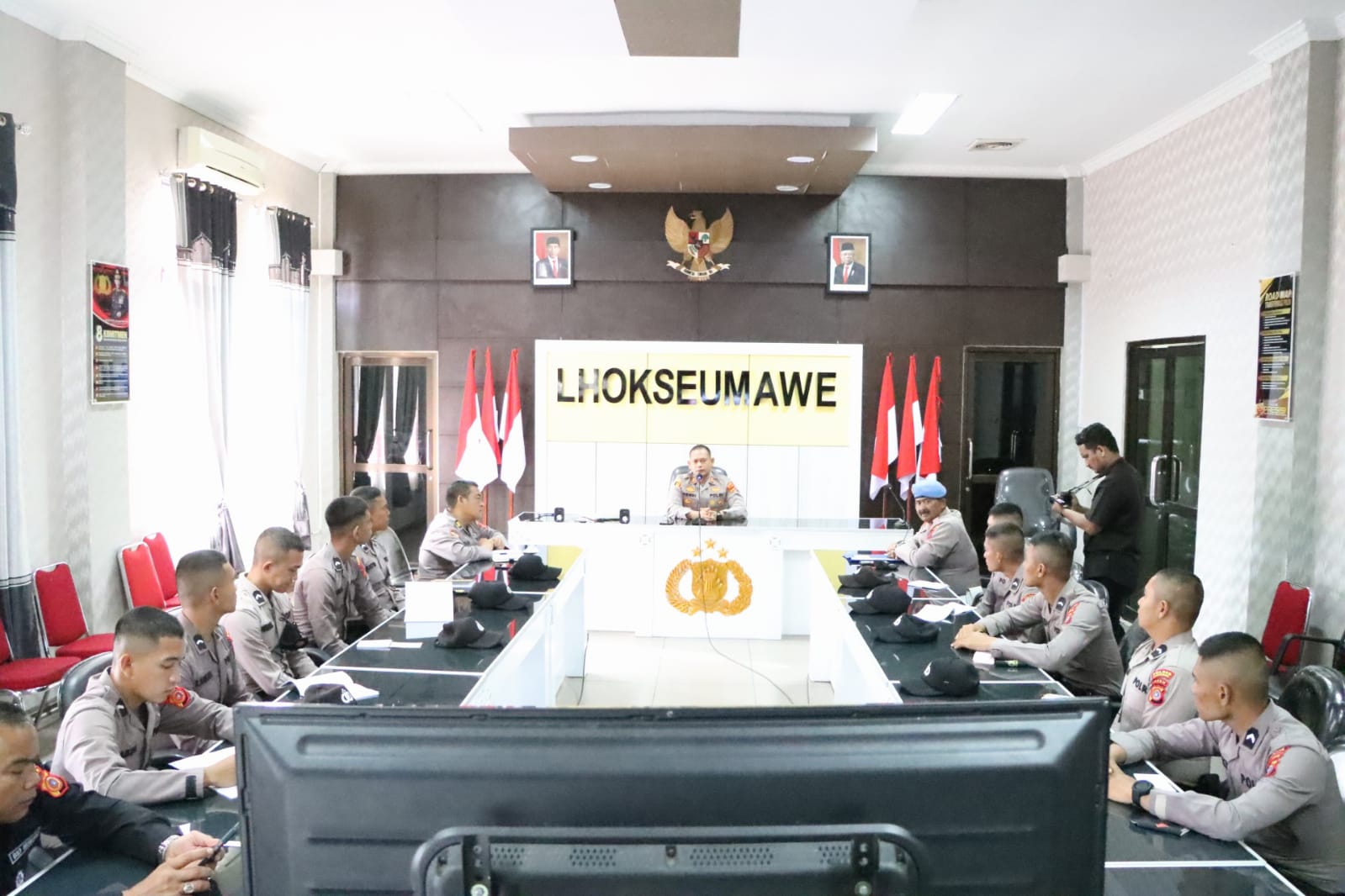 LHOKSEUMAWE – Kapolres Lhokseumawe, AKBP Henki Ismanto, SIK memberi arahan dan pembekalan kepada Bintara Remaja Polri, kegiatan ini berlangsung di Aula Vidcom Polres Lhokseumawe, Senin (29/8/2022).