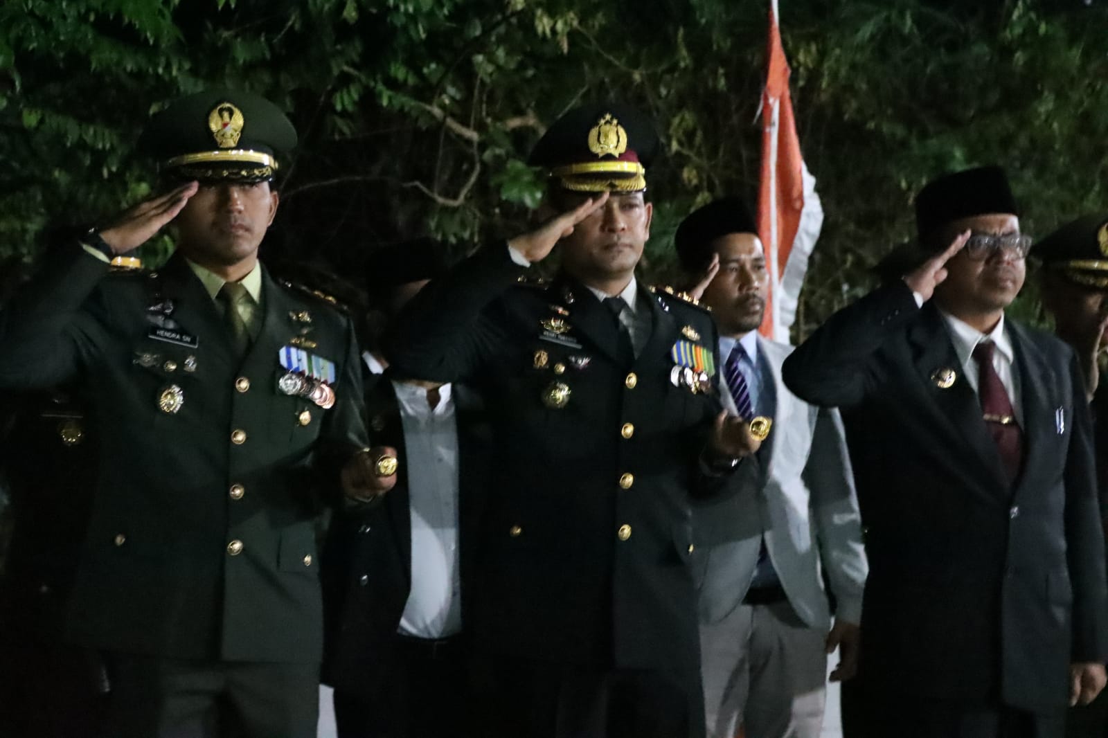 LHOKSEUMAWE – Kapolres Lhokseumawe, AKBP Henki Ismanto, SIK menghadiri upacara dan renungan suci HUT RI ke 77 di Taman Makam Pahlawan (TMP) Blang Panyang, Kecamatan Muara Satu, Kota Lhokseumawe, Rabu (17/8/2022) dinihari.