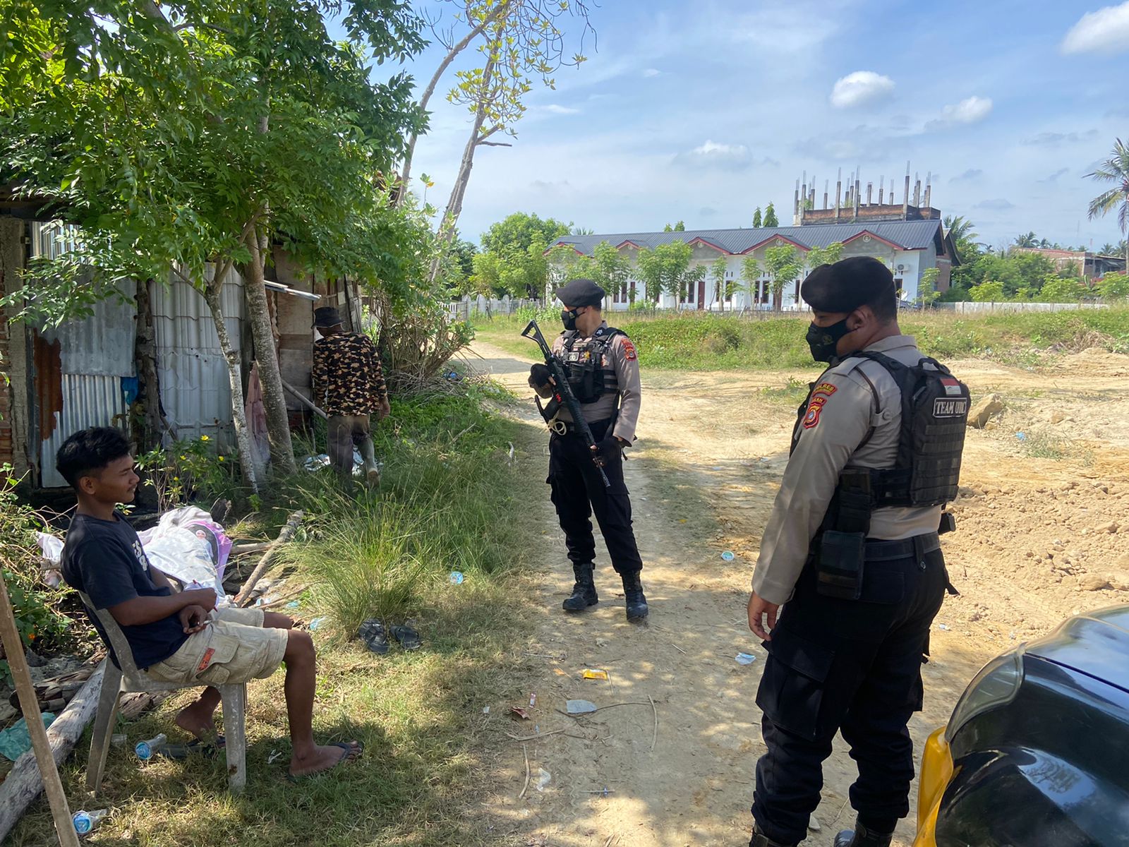 LHOKSEUMAWE – Personel Sat Samapta Polres Lhokseumawe menyisir sejumlah lokasi pada kegiatan patroli rutin mencegah gangguan Kamtibmas di wilayah hukum Polres Lhokseumawe, Jumat (19/8/2022) sore.
