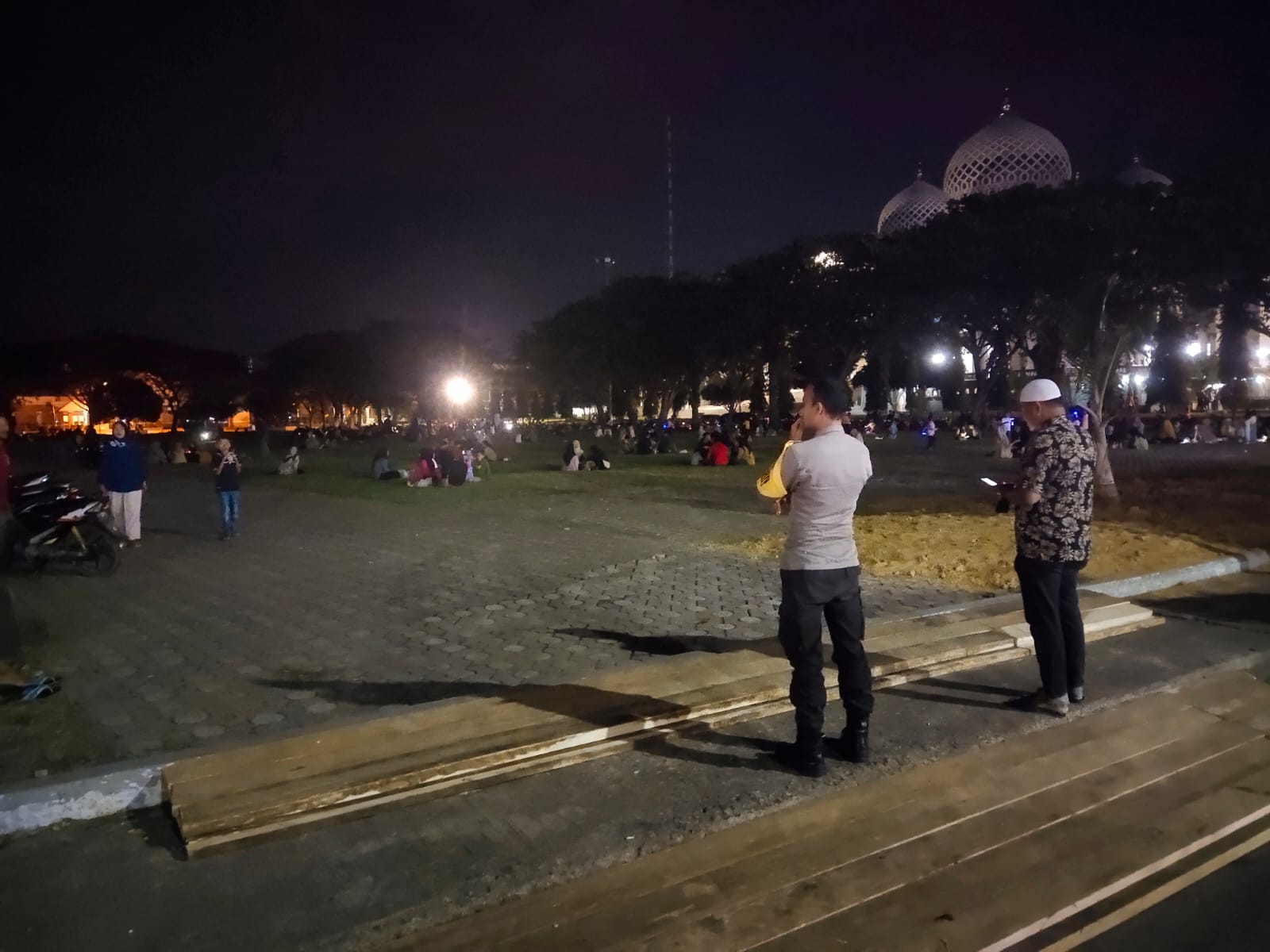 LHOKSEUMAWE – Personel Polsek Banda Sakti melakukan patroli mencegah gangguan Kamtibmas. Dalam kegiatan ini, personel berpatroli memantau aktivitas masyarakat di lapangan Hiraq, Kota Lhokseumawe, Rabu (24/8/2022) malam.