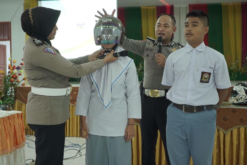 Kapolres Lhokseumawe, AKBP Henki Ismanto, SIK melalui Kasat Lantas, AKP Vifa Febriana Sari, SH, SIK MH mengatakan, kegiatan police goes to school atau polisi “saweu sikula” tersebut untuk memberi edukasi tentang tata tertib berlalu lintas guna menekan angka kecelakaan lalu lintas di kalangan siswa.