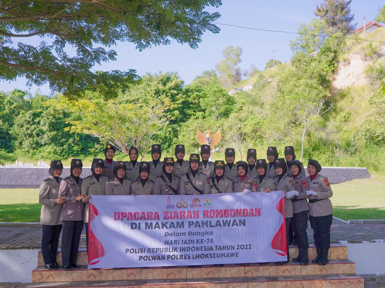 LHOKSEUMAWE – personel Polwan Polres Lhokseumawe melakukan ziarah dan tabur bunga di Taman Makam Pahlawan (TMP) Blang Panyang, Kecamatan Muara Satu, Kota Lhokseumawe, Rabu (24/8/2022).
