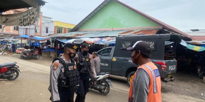 LHOKSEUMAWE – Tim Unit Reaksi Cepat (URC) Sat Samapta Polres Lhokseumawe melaksanakan patroli rutin antisipasi gangguan Kamtibmas di lokasi publik di wilayah hukum Polres Lhokseumawe, Sabtu (27/8/2022) pagi. Pada patroli ini, personel memberi himbauan kepada pedagang dan petugas parkir.