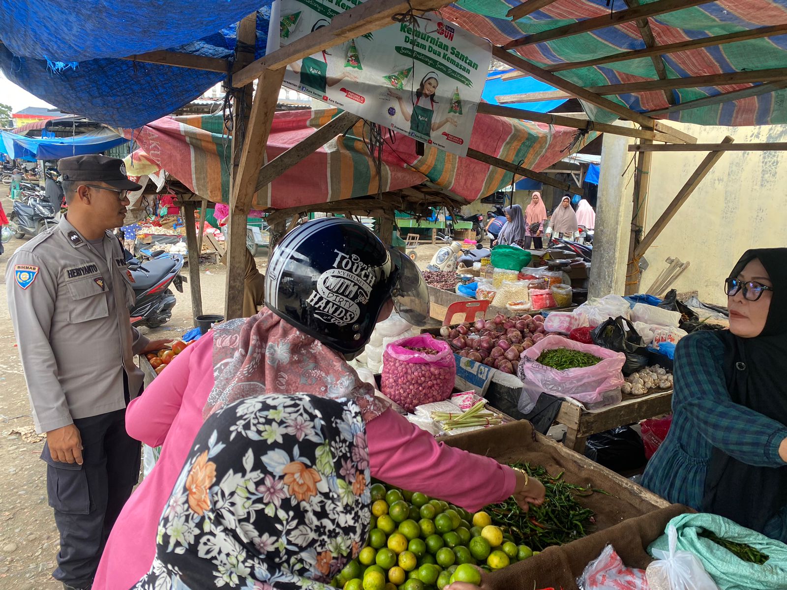 LHOKSEUMAWE – Personel Polsek Dewantara rutin turun ke pasar tradisional guna mengecek stok sembako, Sabtu (5/11/2022), kegiatan tersebut guna mengantisipasi kelangkaan dan menjaga stabilitas persediaan barang kebutuhan pokok masyarakat.