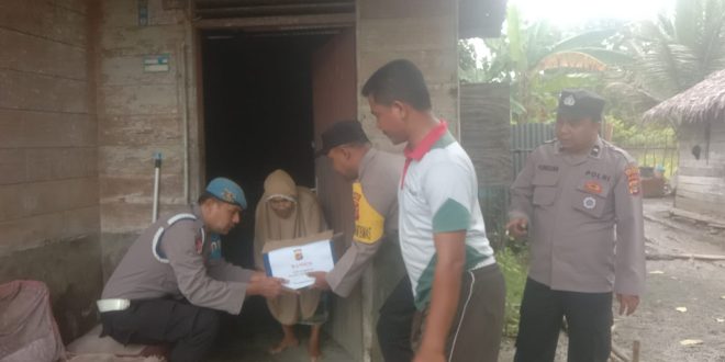 LHOKSEUMAWE – Personel Polsek Samudera menyalurkan bantuan kepada warga kurang mampu di Gampong Pusong, Kecamatan Samudera, Aceh Utara, wilayah hukum Polres Lhokseumawe, Jumat (4/11/2022).