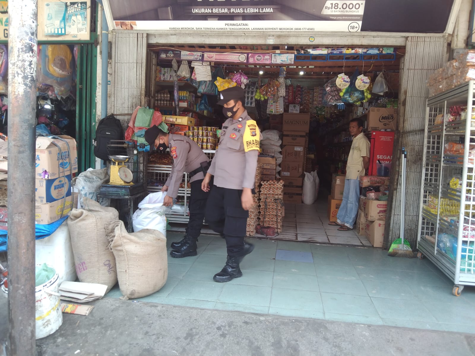 LHOKSEUMAWE – Personel Polsek Samudera mengecek persediaan barang kebutuhan pokok masyarakat di sejumlah pedagang di Kecamatan Samudera, Aceh Utara, wilayah hukum Polres Lhokseumawe, Rabu (9/11/2022).