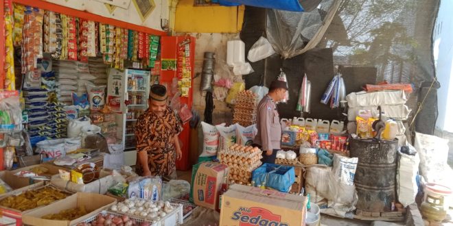 LHOKSEUMAWE – Personel Polsek Samudera masuk ke pasar tradisional guna memantau persediaan sembilan bahan pokok (sembako), Jumat (4/11/2022).