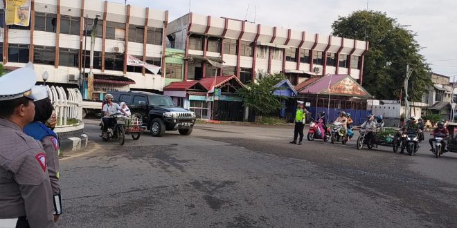 LHOKSEUMAWE – Polantas Lhokseumawe mengedukasi masyarakat terkait aturan berlalulintas dengan tertib melalui program Polisi Meupep – pep di bundaran Pos Lantas, Cunda, Kecamatan Muara Dua, Kota Lhokseumawe, Jumat (4/11/2022) pagi.