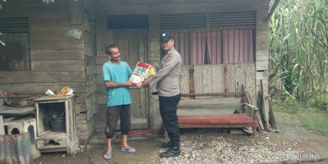 LHOKSEUMAWE – Personel Polsek Muara Batu, Polres Lhokseumawe menyalurkan bantuan kepada warga kurang mampu di Gampong Tumpok Beurandang, Kecamatan Muara Batu, Aceh Utara, wilayah hukum Polres Lhokseumawe, Jumat (4/11/2022).