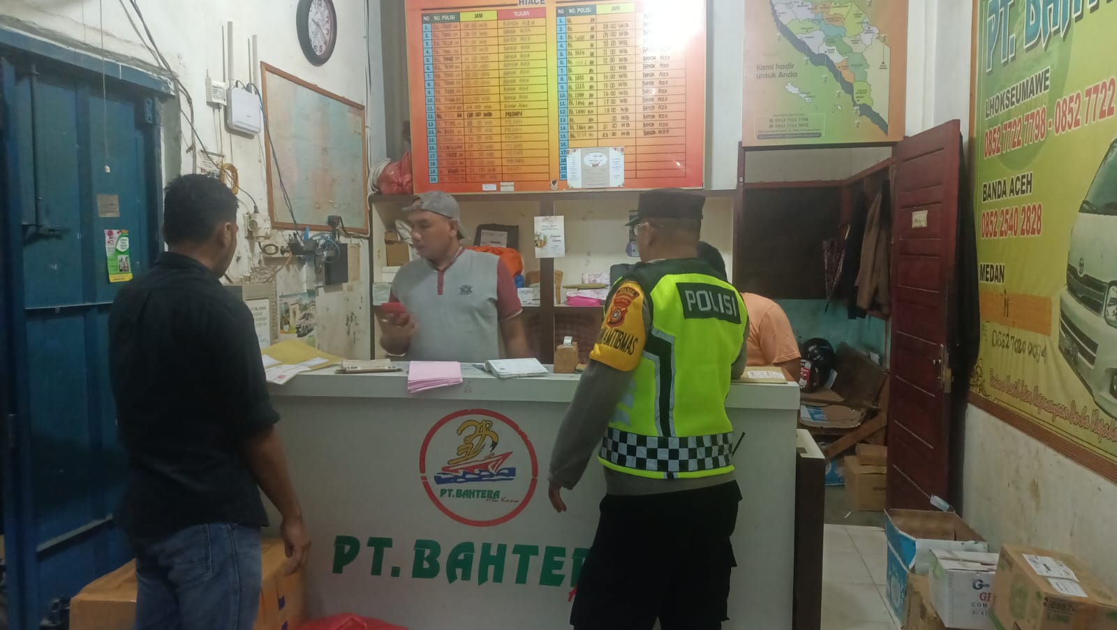 Dalam patroli ini personel menyambangi petugas loket terminal angkutan umum antarkota ke Terminal Keude Aceh, di Kecamatan Banda Sakti, Lhokseumawe.