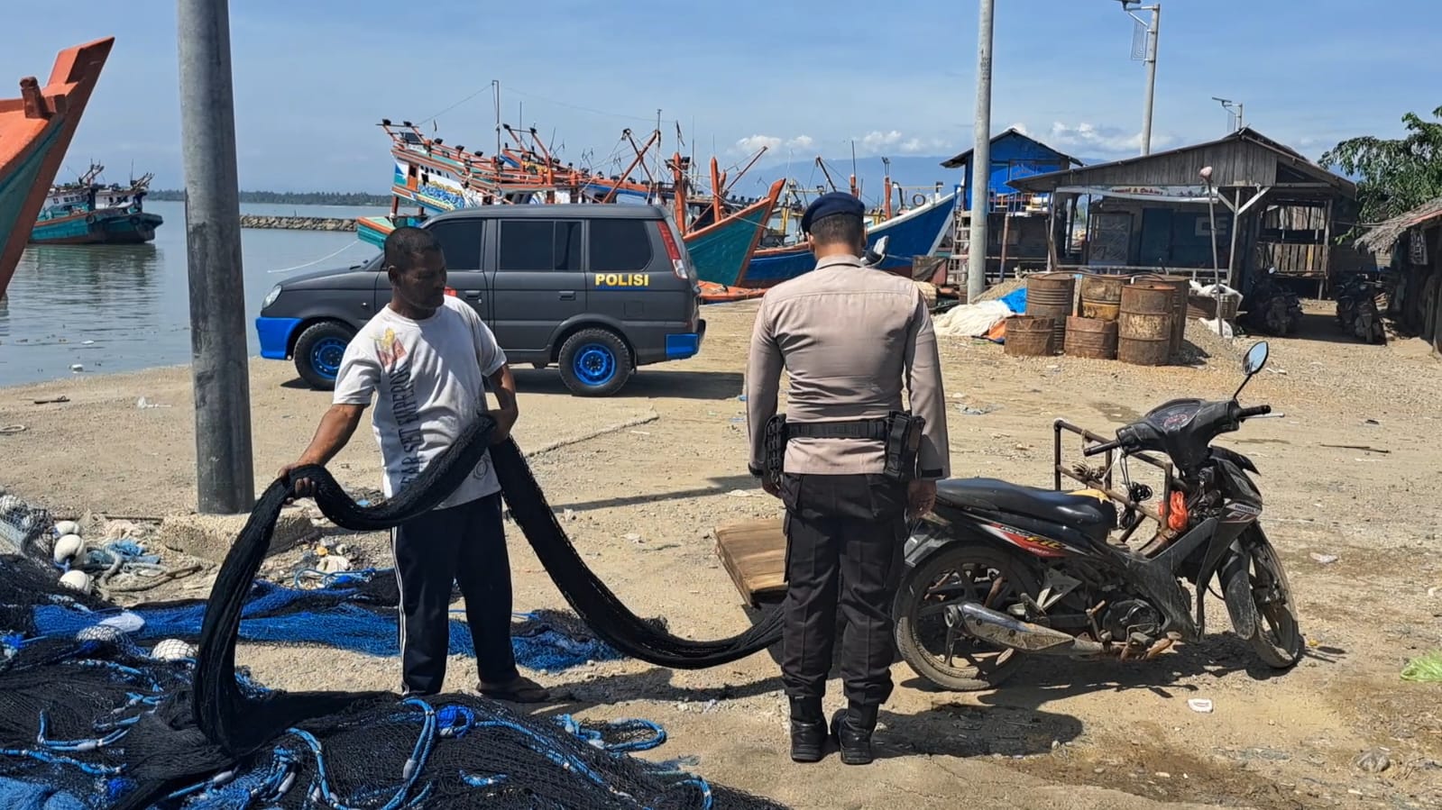 LHOKSEUMAWE – Wujudkan Keselamatan dan Kelestarian Laut, Polisi Perairan Polres Lhokseumawe melakukan patroli dialogis dengan menyapa masyarakat Nelayan Pusong guna menyampaikan pesan kamtibmas