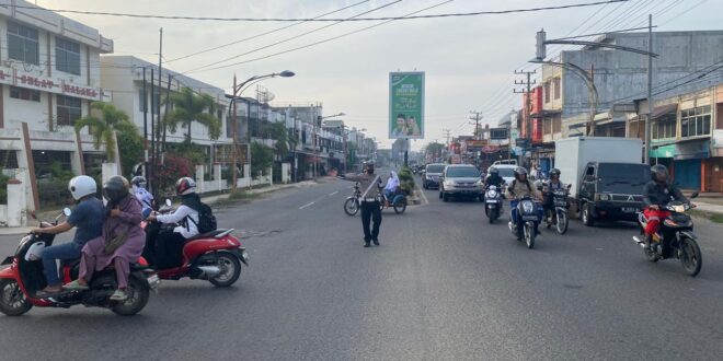 LHOKSEUMAWE, Hari ini, Satuan Lalu Lintas (Sat Lantas) Polres Lhokseumawe Polda Aceh melakukan operasi penegakan disiplin lalu lintas bertajuk Ops Patuh di sejumlah titik Strong Point pagi. Operasi ini dilakukan sebagai bagian dari upaya meningkatkan kepatuhan masyarakat terhadap aturan lalu lintas guna menjaga keamanan dan ketertiban berlalu lintas dalam wilayah Kota Lhokseumawe .Selasa 23/04/2024 pagi.