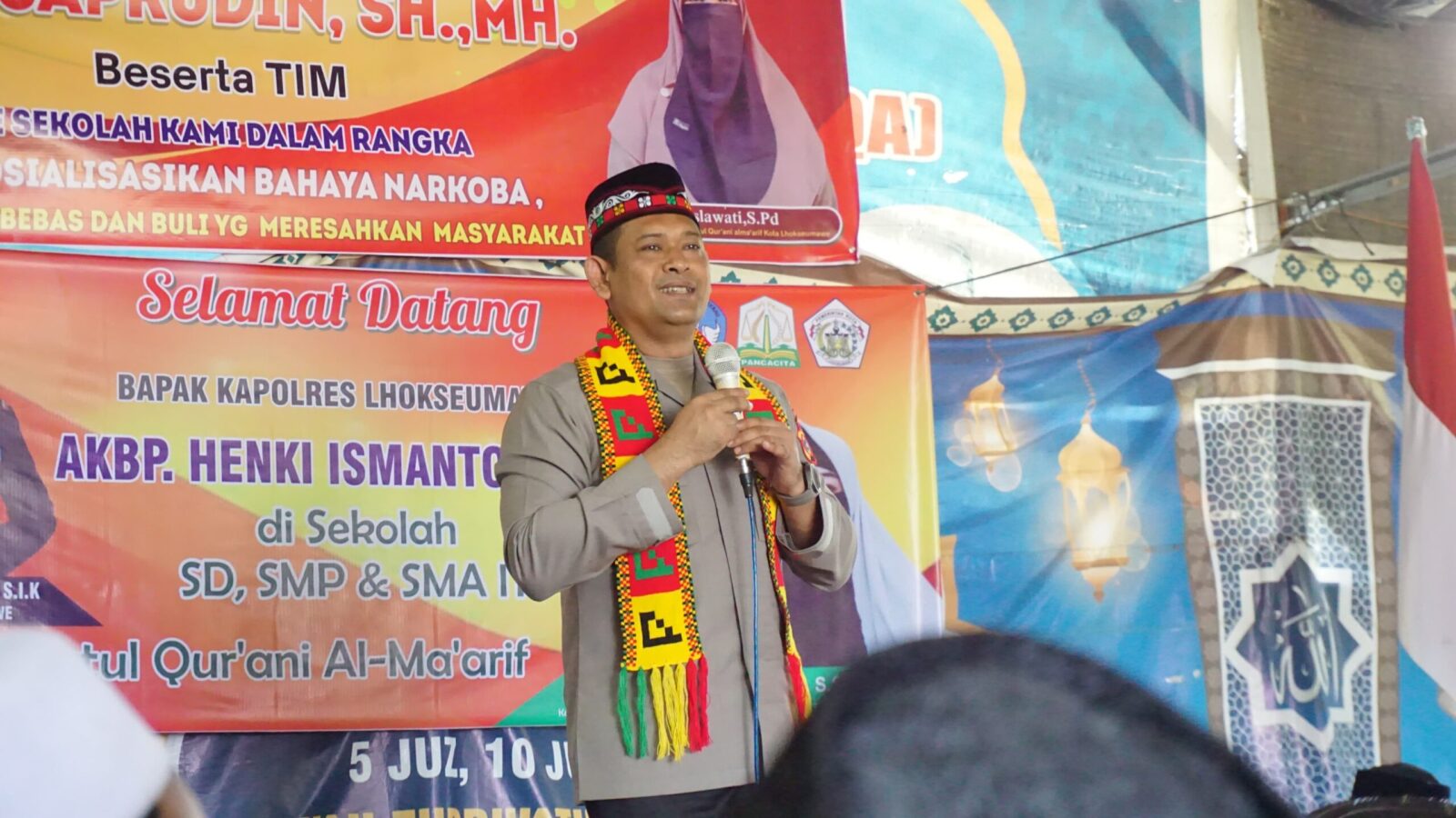 Dalam acara yang dihadiri Kapolres Lhokseumawe AKBP Henki Ismanto, S.I.K, Kapolsek Blang Mangat AKP Safrudin, SH, MH, Camat Blang Mangat Safriadi, S.STP, MSM, pimpinan Dayah Zurriyatul Qur’ani Alma’arif serta sejumlah santri tersebut Kapolres menekankan pentingnya menentukan tujuan masa depan yang jelas bagi para santri.