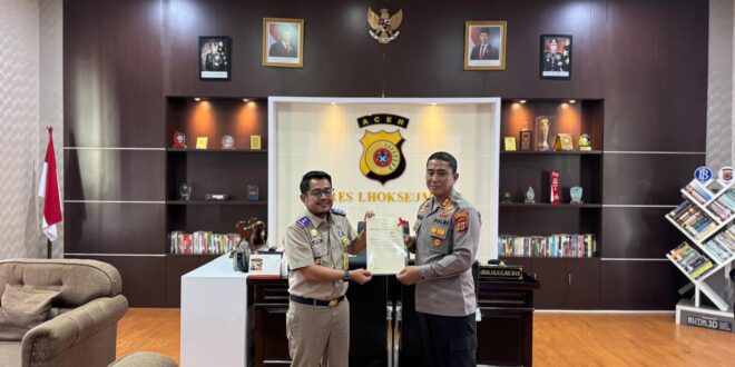Lhokseumawe – Kapolres Lhokseumawe AKBP Dr. Ahzan, S.H., S.I.K., M.S.M., M.H., menyambut kunjungan silaturahmi Kepala Badan Pertanahan Nasional (BPN) Kota Lhokseumawe yang baru, Husni, S.ST, di Mapolres Lhokseumawe, Selasa (12/8/2025). Kunjungan ini menjadi ajang perkenalan sekaligus memperkuat sinergi antara kedua instansi dalam mendukung pelayanan publik, khususnya di bidang pertanahan.