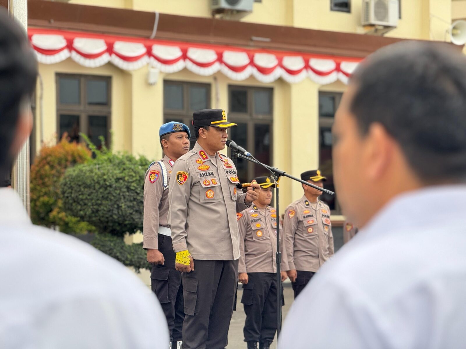 Lhokseumawe – Kapolres Lhokseumawe AKBP Dr. Ahzan, S.H., S.I.K., M.S.M., M.H memimpin apel pagi di halaman Mapolres Lhokseumawe, Senin (11/8/2025) pagi. Apel ini diikuti Wakapolres, para kabag, kasat, kasi, kapolsek jajaran, personel brigadir, serta ASN Polres Lhokseumawe.