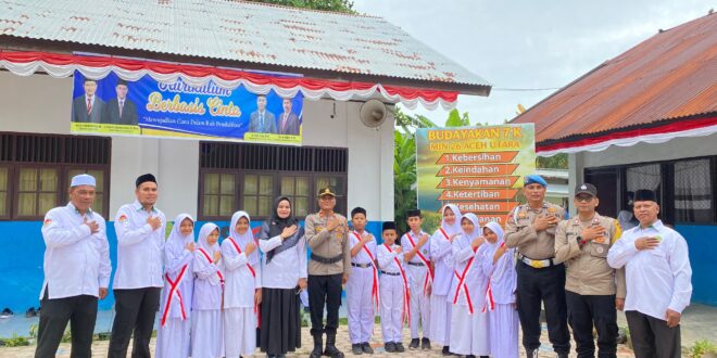Aceh Utara – Kapolsek Syamtalira Bayu bersama jajaran menghadiri undangan sebagai Pembina Upacara Bendera di MIN 26 Syamtalira Bayu, Kabupaten Aceh Utara, Senin (4/8/2025) pagi. Kegiatan yang dimulai pukul 07.30 WIB di lapangan sekolah tersebut berlangsung khidmat dan diikuti antusias oleh 404 pelajar.