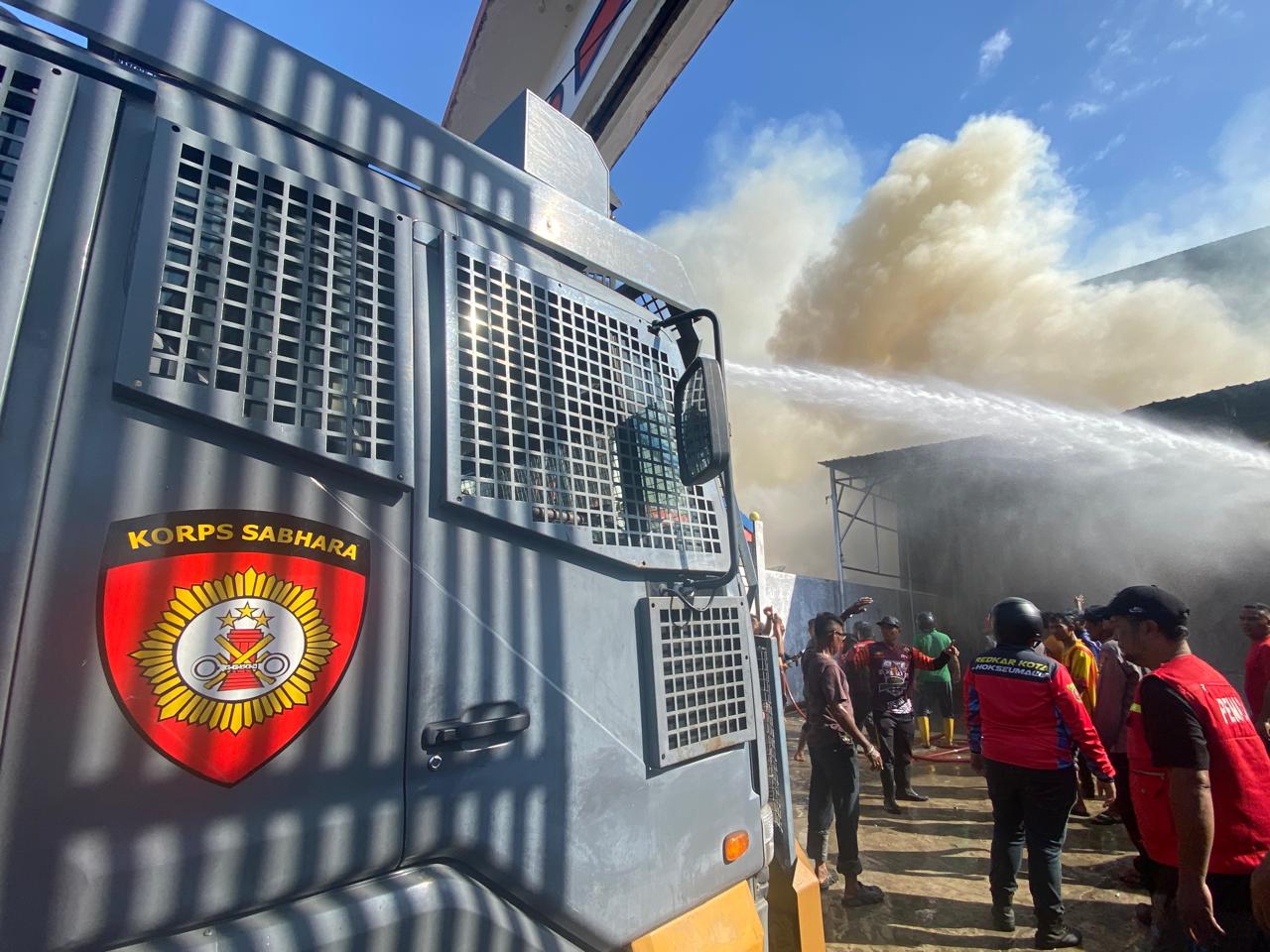 Kapolsek menambahkan, bahwa pihak kepolisian bersama instansi terkait turun ke lokasi untuk membantu pemadaman dan mengatur arus lalu lintas agar tidak menimbulkan kemacetan.