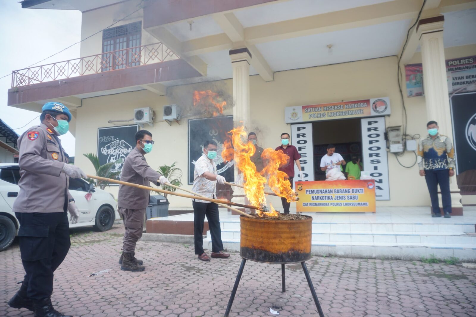 “Pemusnahan ini adalah bagian dari komitmen Polres Lhokseumawe dalam memberantas peredaran narkoba serta bentuk transparansi dalam penanganan kasus tindak pidana narkotika,” ujarnya.