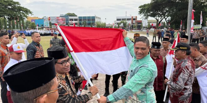 Lhokseumawe — Wakapolres Lhokseumawe Kompol Salmidin, S.E., M.M mewakili Kapolres Lhokseumawe menghadiri Apel Gabungan dalam rangka Launching Pembagian Bendera Merah Putih di Kota Lhokseumawe yang digelar di Lapangan Hiraq, Jalan Merdeka, Desa Simpang Empat, Kecamatan Banda Sakti, Jumat (1/8/2025) pagi.
