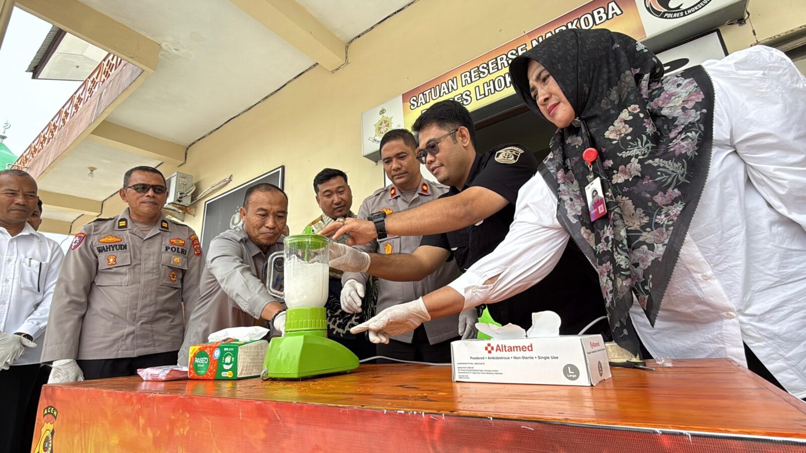 Hadir dalam pemusnahan barang bukti ini Wakapolres Lhokseumawe Kompol Salmidin, SE.M.M, Kasat Resnarkoba AKP Saiful Kamal, S.T.K., S.I.K., M.H., Kasi Was Polres Lhokseumawe IPTU Wahyudi, S.Sos., Kasi Propam AKP Situmorang, S.H., Kasat Tahti IPTU Aiyub, Kasi Pidum Kejari Lhokseumawe Abdi Fikri, S.H., perwakilan PN Lhokseumawe Ery, S.H., perwakilan Dinas Kesehatan Kota Lhokseumawe Morinawati, SKM., MAP., serta penasihat hukum Doddy Ermawan, S.H.
