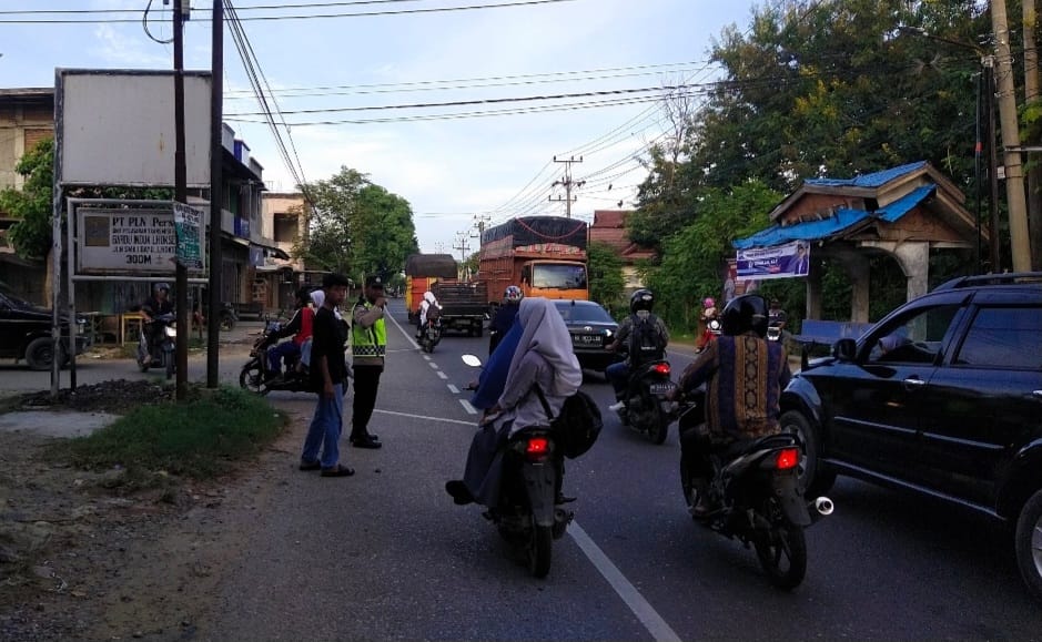 Aceh Utara – Kehadiran polisi di pagi hari tidak hanya sebatas mengatur arus lalu lintas, tetapi juga menjadi sahabat bagi para pelajar. Hal itu terlihat saat personel Polsek Syamtalira Bayu melaksanakan strong point pagi di Simpang Cot Plieng, Jalan Raya Medan–Banda Aceh, Kamis (18/9/2025).