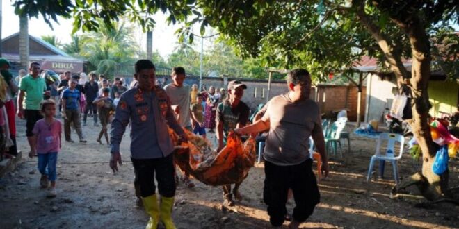 ACEH UTARA – Dengan kondisi medan ekstrem dan lumpur yang mencapai sepinggang orang dewasa, Kapolres Lhokseumawe AKBP Dr. Ahzan., S.H., S.I.K., M.S.M., M.H memimpin langsung proses evakuasi jenazah korban banjir di Desa Blang Rileung, Kecamatan Sawang, Kabupaten Aceh Utara, pada Sabtu sore (29/11/2025). Aksi cepat dan penuh risiko ini dilakukan setelah warga melaporkan adanya korban yang ditemukan di kawasan kebun dekat aliran sungai.
