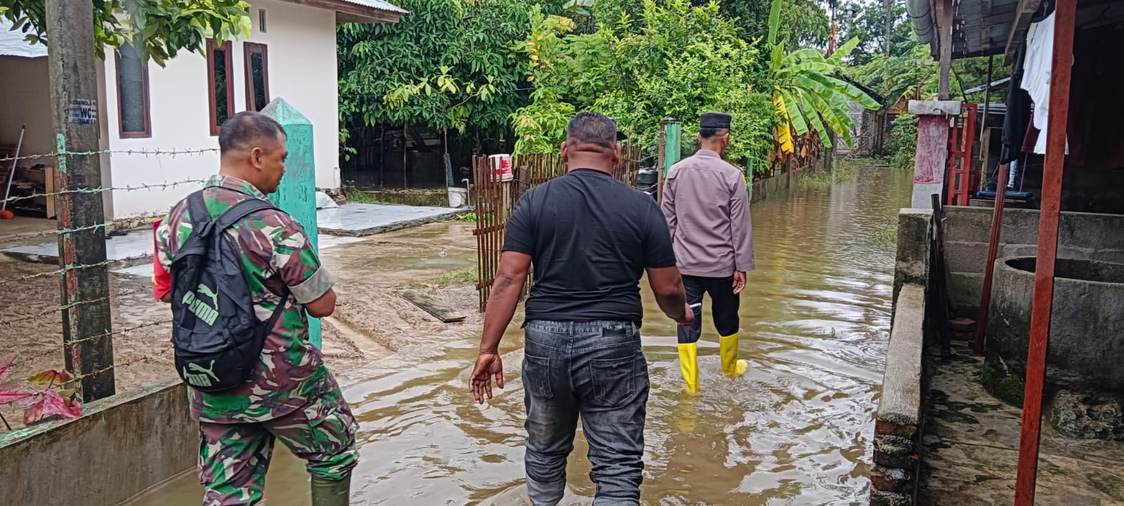 ACEH UTARA – Tingginya curah hujan yang mengguyur wilayah Kecamatan Muara Batu dalam beberapa hari terakhir mengakibatkan genangan air di halaman rumah warga di sejumlah desa. Menyikapi kondisi tersebut, Kapolsek Muara Batu Ipda Syukrullah, S.E. bersama unsur Muspika turun langsung melakukan peninjauan ke lokasi terdampak, Minggu (23/11/2025) sekira pukul 12.05 WIB.