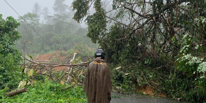 ACEH UTARA – Hujan deras yang mengguyur wilayah Kecamatan Nisam Antara menyebabkan tanah longsor dan pohon tumbang di Jalan KKA Bener Meriah KM 30, Dusun Kreung Tuan, Desa Alue Dua, Rabu (26/11/2025). Akibatnya, jalan penghubung menuju Bener Meriah tersebut tidak bisa dilewati.
