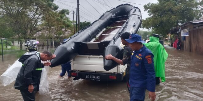 LHOKSEUMAWE – Hujan deras yang melanda Kota Lhokseumawe dan Aceh Utata dalam beberapa hari terakhir menyebabkan sejumlah Desa terendam banjir. Menindaklanjuti kondisi tersebut, Satuan Polairud Polres Lhokseumawe mengerahkan satu unit perahu karet untuk membantu proses evakuasi warga di titik-titik yang terdampak paling parah, Rabu (26/11/2025).