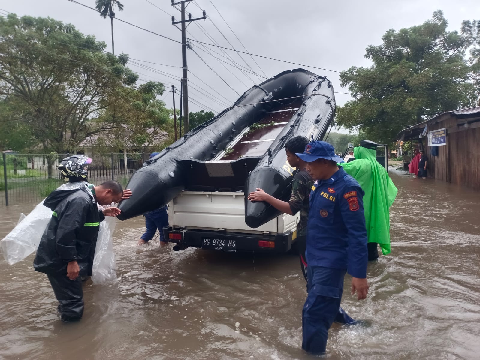 Personel Polairud bergerak menuju lokasi banjir untuk mengevakuasi warga yang sakit, lanjut usia, serta membantu masyarakat menuju tempat aman. Selain itu, petugas juga mendukung distribusi sembako dari perangkat gampong yang akan digunakan untuk membuka dapur umum bagi warga terdampak.