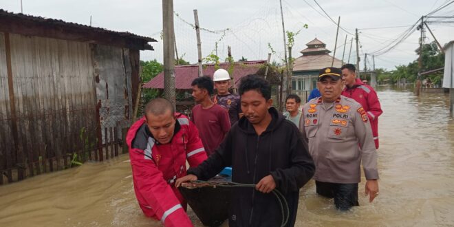 Evakuasi dilakukan setelah sejumlah rumah warga mulai tergenang hingga mencapai ketinggian yang mengkhawatirkan. Personel gabungan Sat Samapta dan Polsek Muara Satu langsung menuju lokasi dengan menggunakan perahu karet serta perlengkapan keselamatan untuk menjemput warga yang rumahnya tidak lagi aman ditempati.