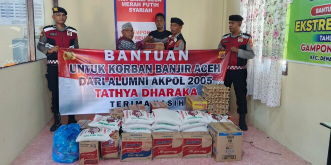Aceh Utara – Alumni Akpol 2005 Tatya Dharaka menyalurkan bantuan sembako kepada warga terdampak banjir bandang di Desa Blang Peuria dan Desa Teungoh, Kecamatan Samudera, Kabupaten Aceh Utara, pada Kamis (04/12/2025) sekitar pukul 11.42 WIB.