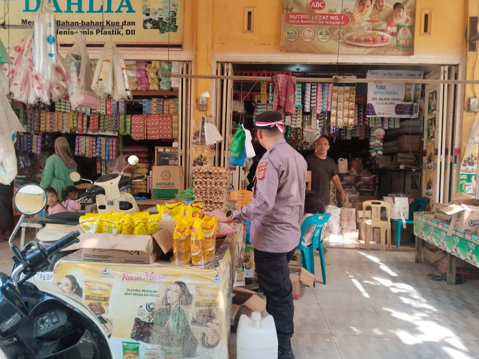 Kapolsek juga mengimbau para pedagang agar tidak melakukan penimbunan serta tetap menjual barang kebutuhan pokok sesuai ketentuan yang berlaku.