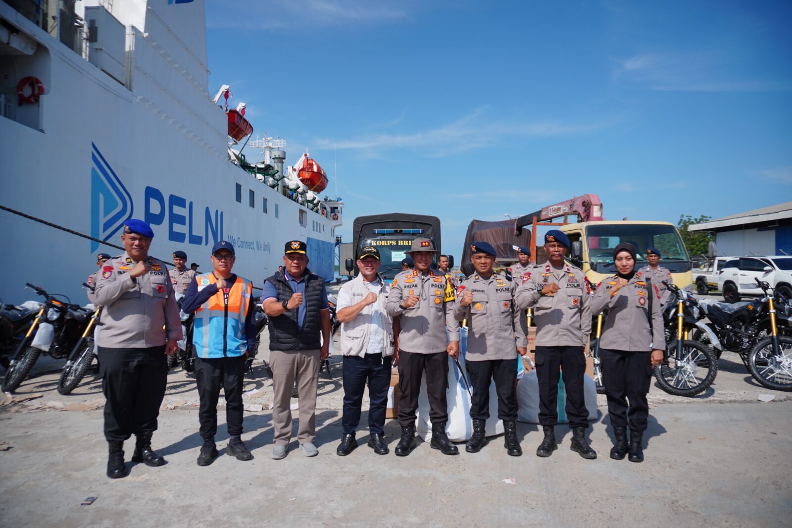 Lhokseumawe – Kapal MV. Egon yang membawa logistik bantuan dari Mabes Polri tiba dan sandar di Pelabuhan Krueng Geukueh, Desa Tambon Baroh, Kecamatan Dewantara, Kabupaten Aceh Utara, Minggu (21/12/2025) sekitar pukul 09.37 WIB.