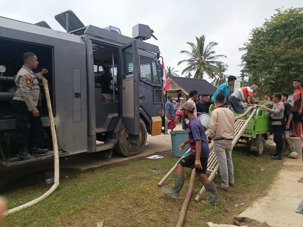 Lhokseumawe – Sebagai bentuk respon cepat terhadap kebutuhan warga terdampak banjir, Kapolres Lhokseumawe mengerahkan kendaraan taktis (rantis) jenis Armored Water Cannon (AWC) untuk mendistribusikan air bersih ke pemukiman yang kesulitan akses air, Rabu (03/12/2025).