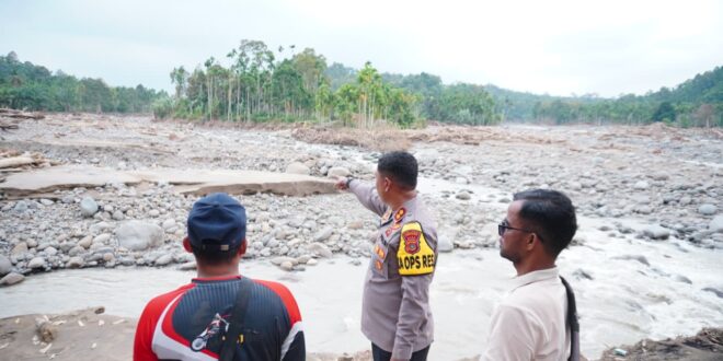Usai menyerahkan bantuan, Kapolres Lhokseumawe melanjutkan peninjauan lapangan dengan menggunakan motor trail, menuju Dusun Cot Calang bersama Gecik setempat untuk melihat langsung kondisi warga yang terisolir.