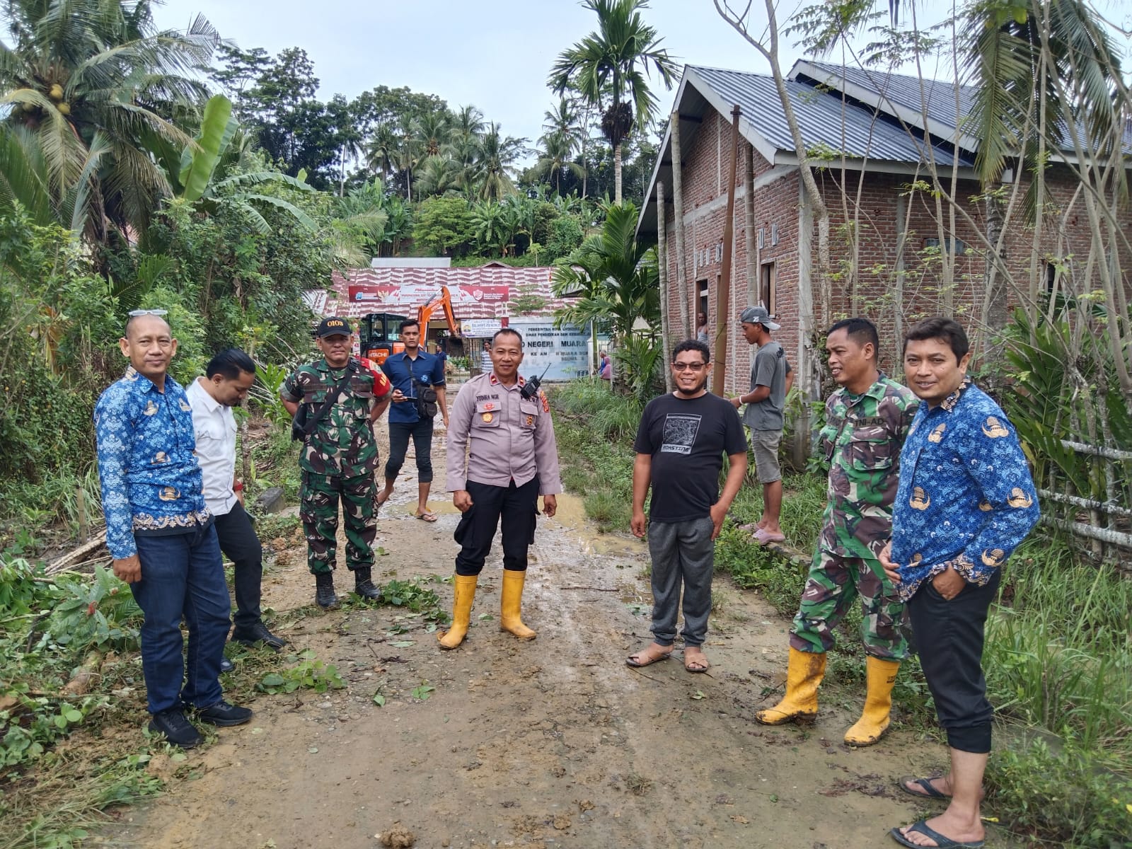 Sekira pukul 09.00 WIB, alat berat berupa satu unit excavator dan satu unit mobil dump truck tiba di lokasi dan langsung digunakan untuk membersihkan saluran air yang tersumbat serta mengangkat lumpur yang menimbun badan jalan. Proses normalisasi dilakukan secara gotong royong bersama warga dengan pengawasan langsung dari Kapolsek Muara Dua.