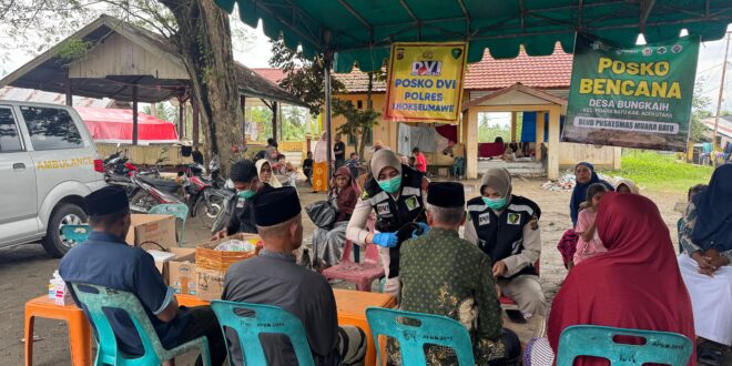 Aceh Utara – Polres Lhokseumawe melalui Seksi Kedokteran dan Kesehatan (Sidokkes) melaksanakan kegiatan bakti kesehatan (baktikes) bagi masyarakat yang mengungsi akibat banjir, Kamis (18/12/2025). Kegiatan tersebut berlangsung di Posko Pengungsian Desa Keude Bungkaih, Kecamatan Muara Batu, Kabupaten Aceh Utara.